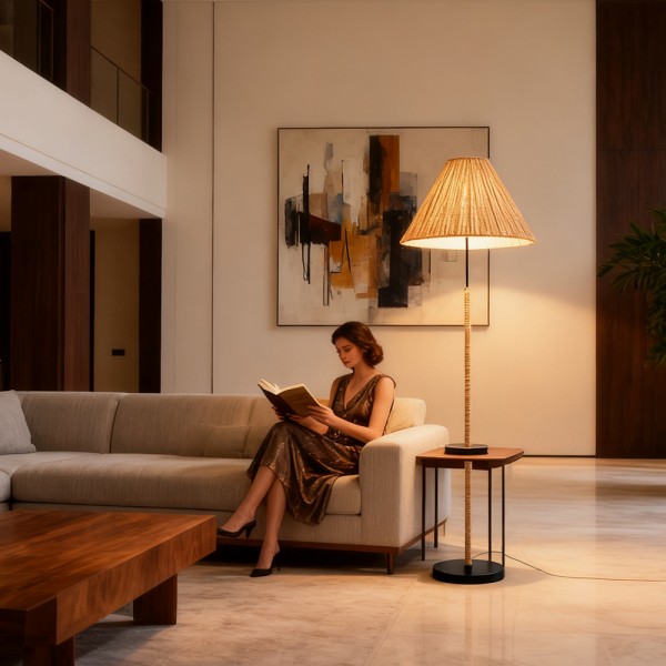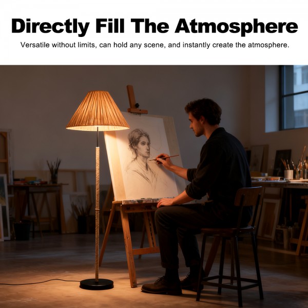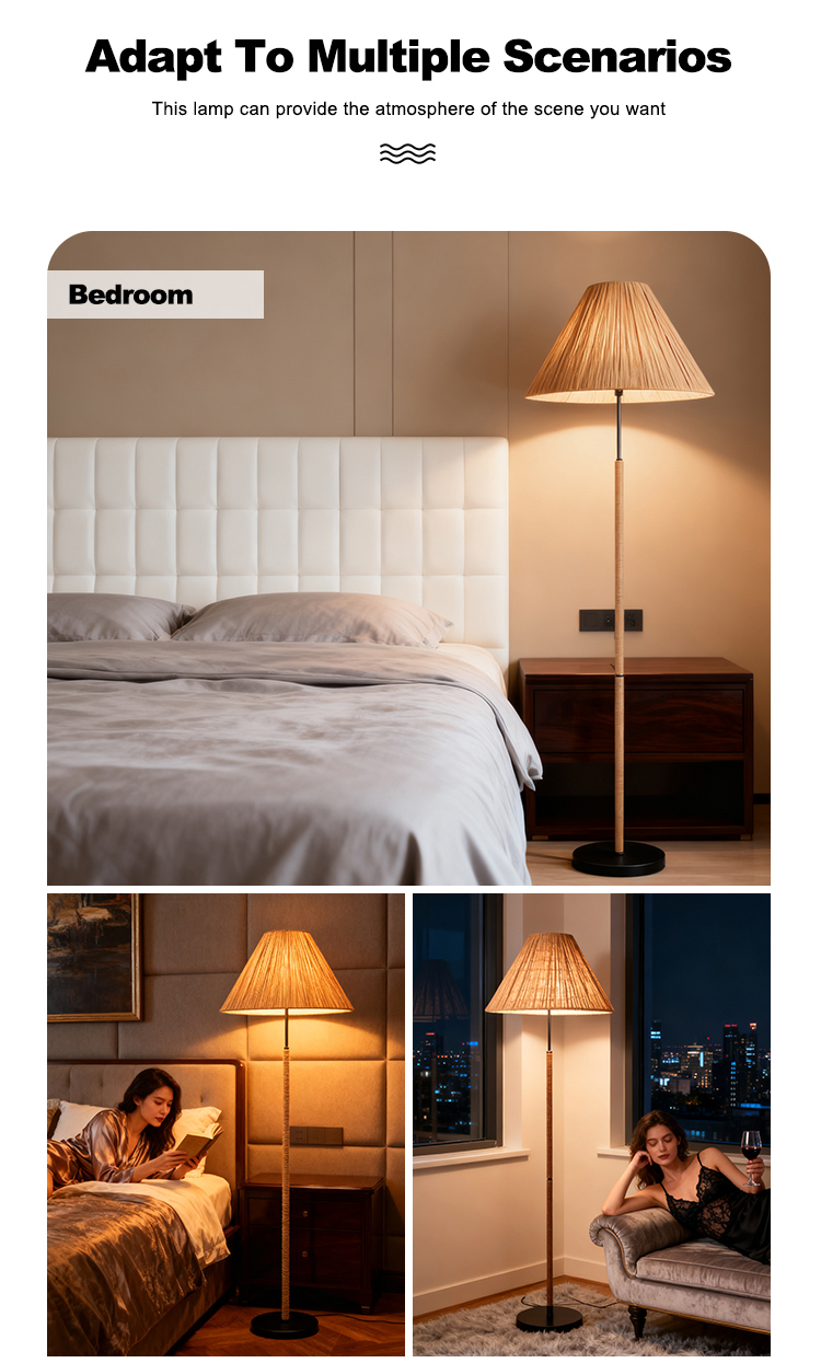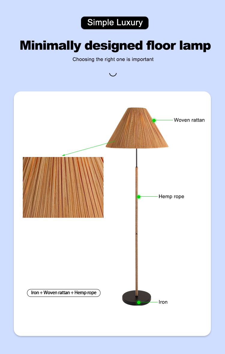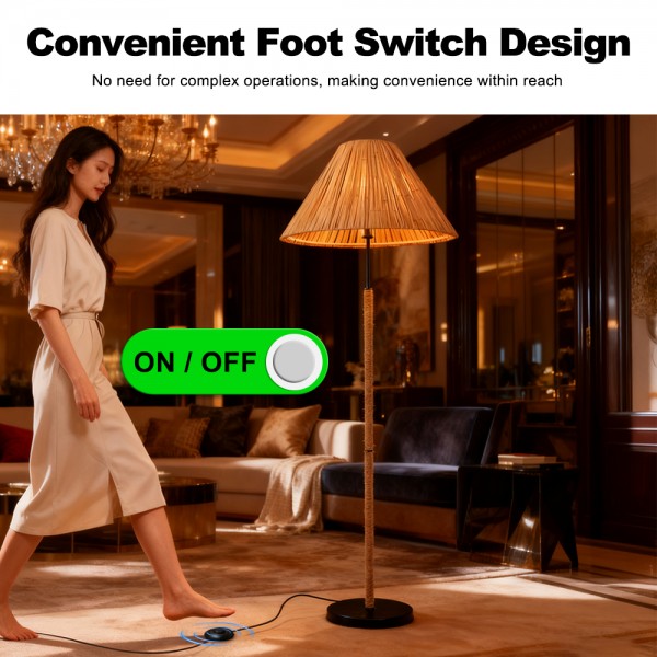 Wholesale Foot Switch Bedroom Living Room Rattan Decorative Standing Vintage Luxury Led Modern Floor Lamp
