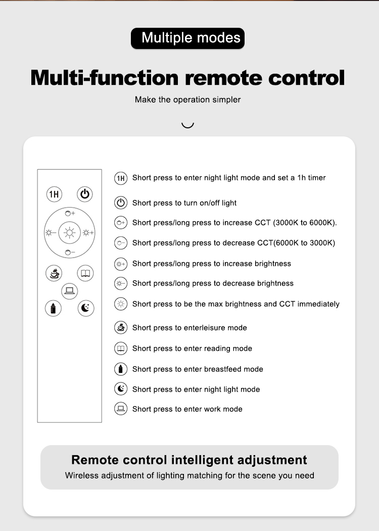 Switch type: Touch switch + Dimming + Remote control