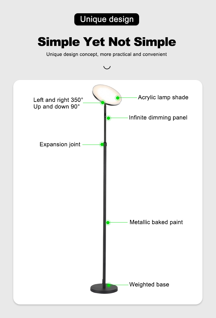 Up Down Luminous Extendable Remote Control Bedroom Dimmable Decorative Standing Living Room Nordic Luxury Led Modern Floor Lamp