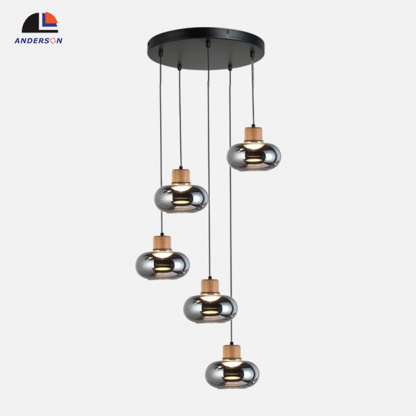 Manufacturer 5 Bulb Hotel Office Dining Black Luxury Bedroom Led Linear Nordic Modern Glass Pendant Light