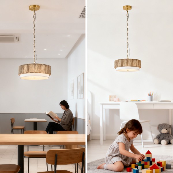 Fabric Restaurant Dining Rattan Vintage Single Luxury Bedroom Decorative Nordic Modern Led Linear Pendant Lights