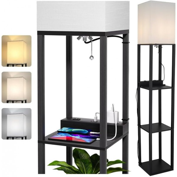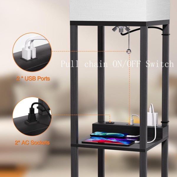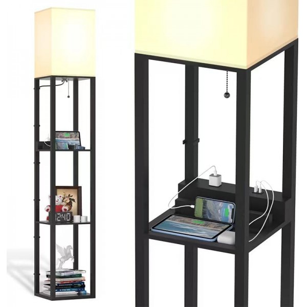 2 USB Ports and 1 AC Sockets: The modern floor lamp with shelves has 2 USB Charge Ports and 1 AC Sockets, allows you to charge devices such as cell phone, laptop, tablet, bluetooth speaker and so on at the same time. This will reduce the confusion of charging cables in the living room, bedroom and office, and effectively saving your time on charging and highly enhance the convenient.