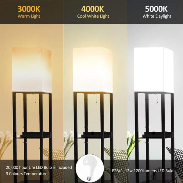 3 Color Temperatures for Shelf Floor Lamp: Adjustable LED bulbs of this elegant floor lamp offer 3 color temperature options (2700K, 4000K, 5000K), allowing you to effortlessly switch between warm, cool and neutral light settings to suit your mood and preferences and create your perfect ambiance.
